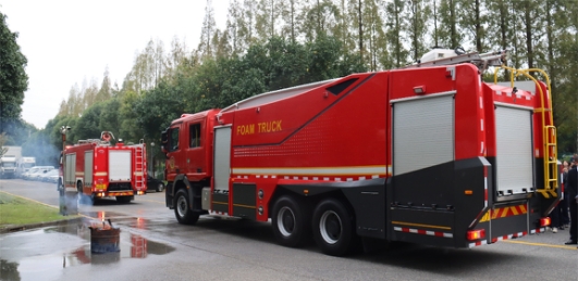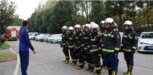 本次消防演習與昆山高新區消防中隊聯動,消防車和消防員也抵達了公司現場,進行消防安全指導檢查。