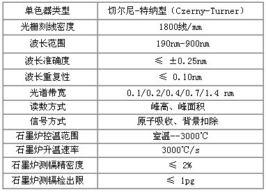 表3.AAS6000原子吸收光譜儀主要技術參數