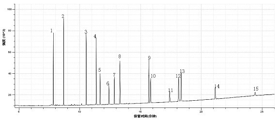 1、萘,2、苊烯,3、苊,4、芴,5、菲,6、蒽,7、熒蒽,8、芘,9、苯并[a]蒽,10、屈,11、苯并[b]熒蒽,12、苯并[k]熒蒽,13、苯并[a]芘,14、茚并[1,2,3 cd] 苝,15、二苯并[a,h]蒽,16、苯并[j,h,i] 苝