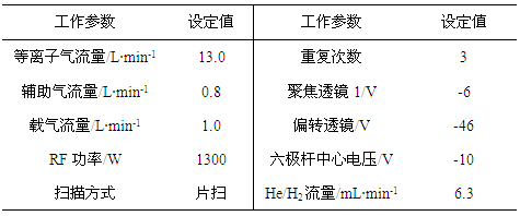 表2.碰撞反應模式下儀器工作參數